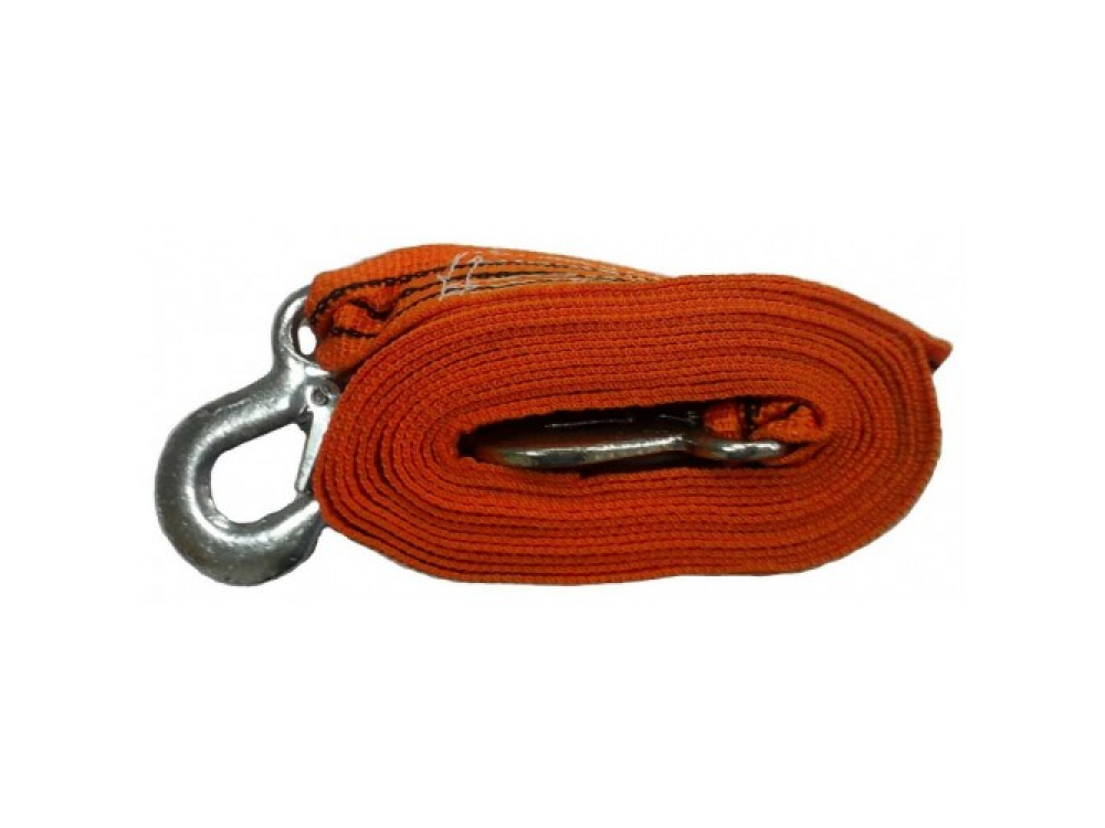Трос ленточный в пакете (2 крюка). Изготовлен из высокопрочной полипропиленовой нити. Предназначен для буксирования транспортных средств. Длинна не менее 4,5метров. Соответствует ПДД. Обеспечивает плавное трогание.