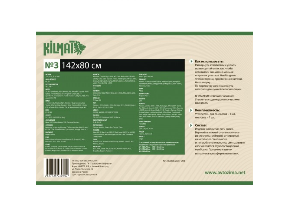 Утеплитель автомобильный KILMAT №3Утеплитель автомобильный KILMAT №3Утеплитель автомобильный KILMAT №3Утеплитель автомобильный KILMAT №3