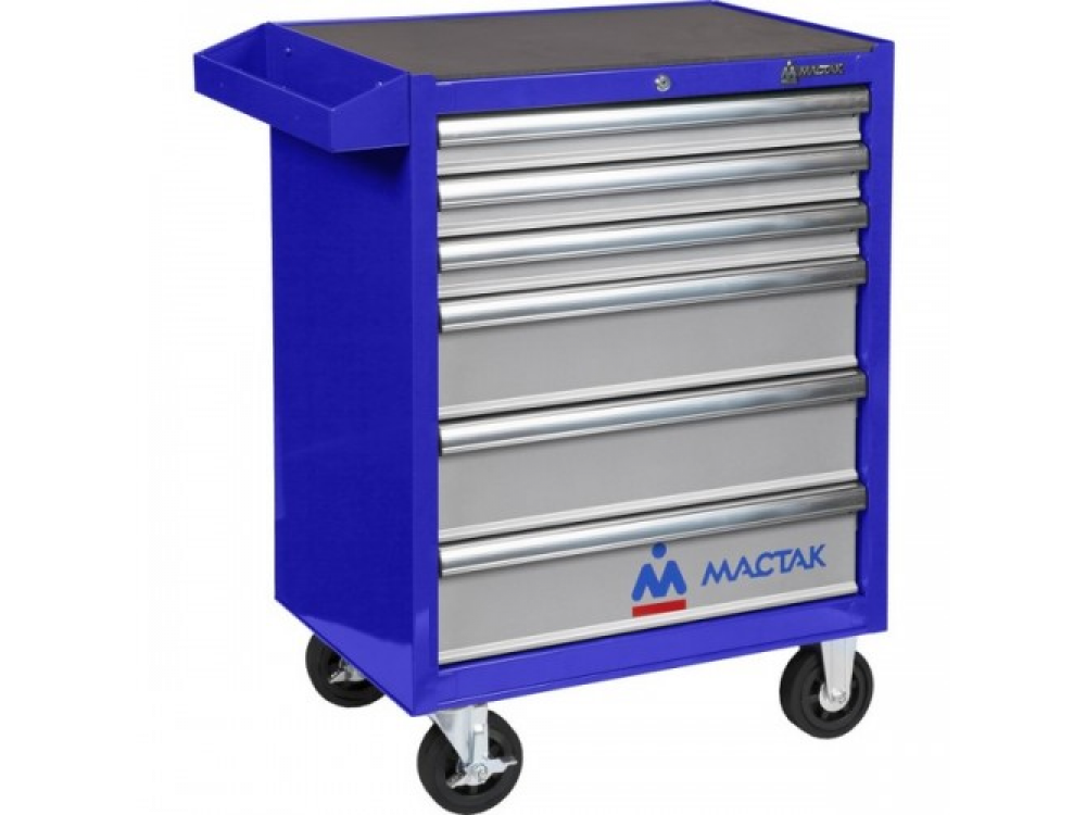 Тележка инструментальная, 6 ящиков, синяя МАСТАК 521-06581B предназначена для организации рабочего места в автосервисе, на станции технического обслуживания, в гараже, а также в любом другом производственном помещении. Технические характеристики: - Тип тележки - закрытая - Количество ковриков - шт 7 шт - Цвет - синий - Макс. нагрузка - 450 кг - Количество ящиков - 6 шт. - Центральный замок - да - Размеры полок - 580х406 мм - Габариты - 680х460х955 мм - Нагрузка на ящик - 20 кг - Масса - 67 кг